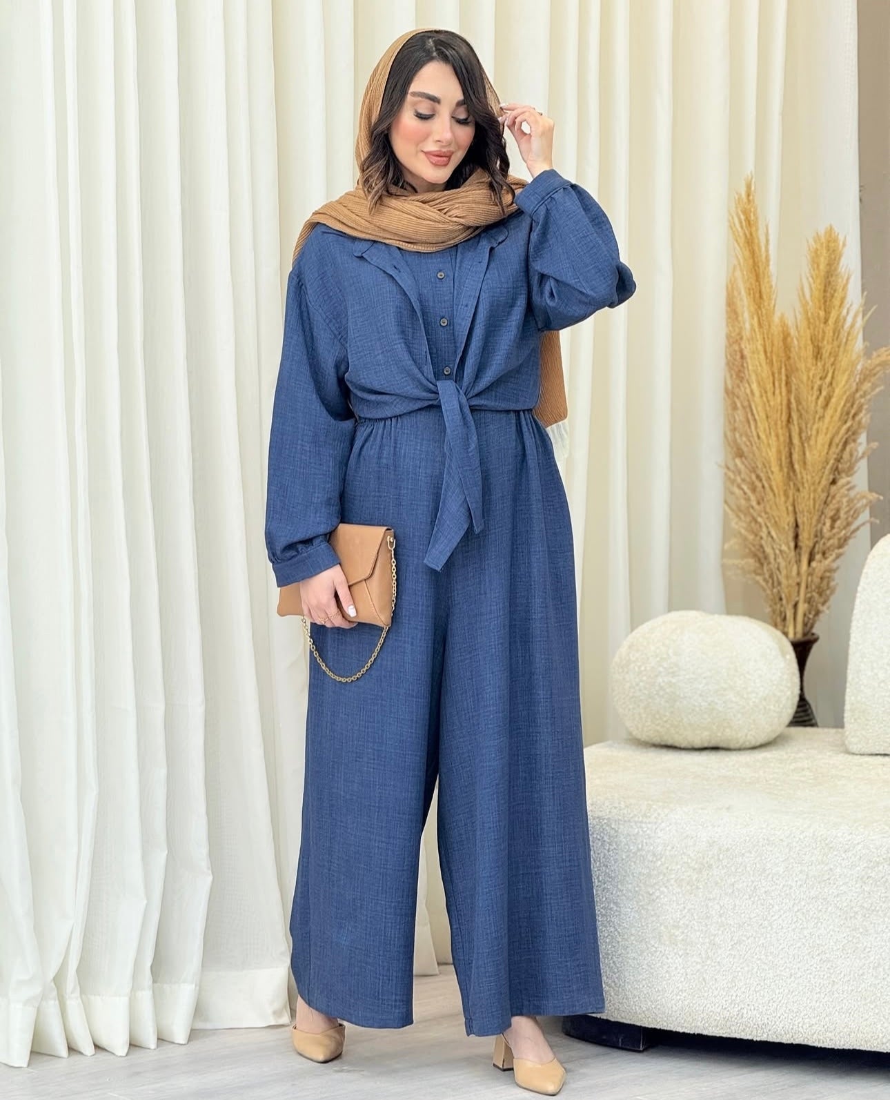 Women Poly Linen Shirt & trouser Jump Set